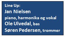 Efter at have været sidemand for amerikanske og danske jazzikoner har Jan Nielsen denne gang sammensat sin egen trio, der spiller gedigent swingende jazz inspireret af Nat King Cole, Oscar Peterson, Earl Garner og Gene Harris. Bassisten Ole Ulvedals solide fundament og Søren Pedersens legende trommespil danner den perfekte ramme for Jan Nielsen, der i en længere årrække boede i USA og bl.a. har spillet gigs i New Orleans samt været fast musiker i en gospelkirke i det sydlige Alabama.